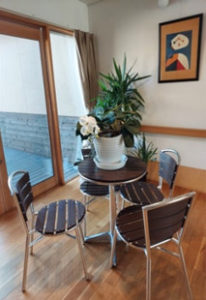 皆さんの語らいの場になるようにテーブルといすを置きました。