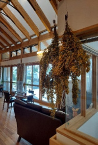 近所の倉本園芸さんから頂いたミモザを外玄関に置いて生花で愛でた後、ドライフラワーにして、いまだに楽しんでいます。