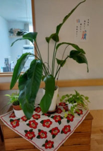 テーブルの上は胡蝶蘭です。平成31年開設時の贈り物の胡蝶蘭です。今年も花が咲きました。毎年華麗な花を咲かせてくれます。