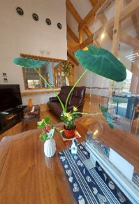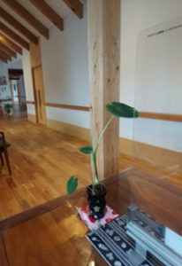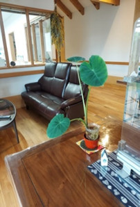 事務所横にはクワズイモを置きました。ほぼ倍近くに大きくなりました。