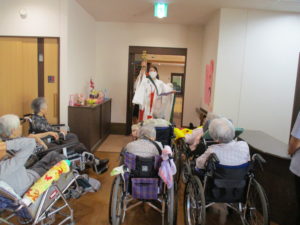 今日は、賀寿祭でした。ユニットにてお払いを受けて