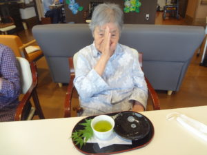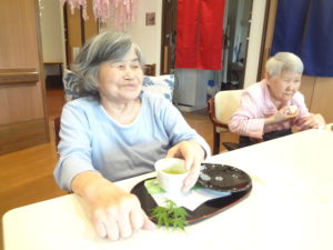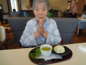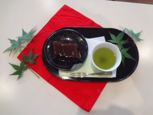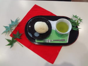 普段のおやつとはちょっと雰囲気を変えて、新緑のもみじをあしらってみました。