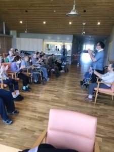 職員が書いた朝顔の絵を「見てくださーい🎶」と皆さんに見せておられました❁⃘*.゚