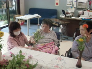 誕生者が女性3名という事もあり、生け花を行いました。