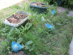 かめユニットのリビング前のお庭で育てているスイカです。
