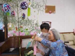 職員も一緒に短冊にお願いごとを書きました(^^♪