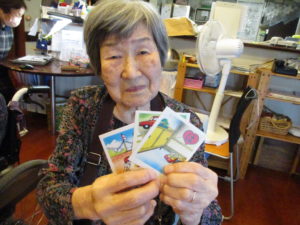 先日益城町在住の藤田様より寄付していただいた『昭和かるた』で、早速津森倶楽部でもかるたを楽しみました!