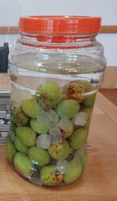 氷砂糖も溶けて、梅からのエキスも充分だと思われたところで、梅を取り出します。