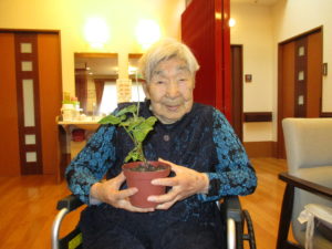 ウッドデッキにプランターを設置し大きくなるのを楽しみに見ています。