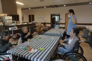 体操をして体を動かし、一緒に童謡を唄います。
