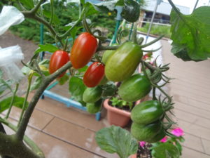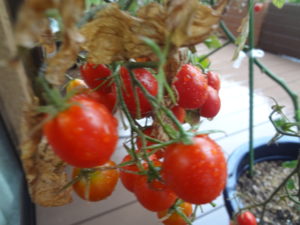 もう葉っぱが枯れてきて、果実も無くなったため、この写真のミニトマトを最後に、今年の収穫は終わりました。