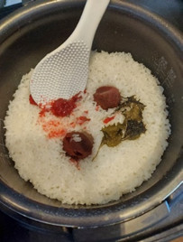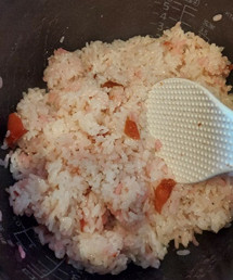 御飯と一緒に炊き込みます。