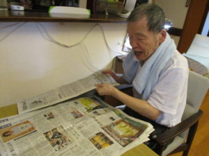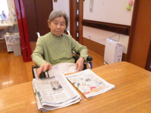 皆様慣れた手つきで、新聞をとてもキレイに折り畳まれます。
