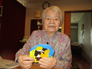 今日は皆さんと一緒に十五夜にちなんだ貼り紙レクレーションを行いました!