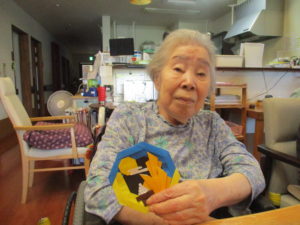 今日は皆さんと一緒に十五夜にちなんだ貼り紙レクレーションを行いました!