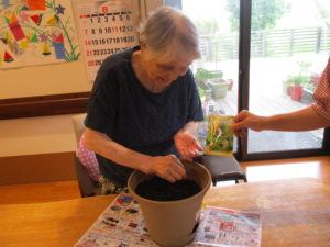 植えたあとはウッドデッキに置いて沢山水やりをしました!