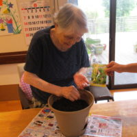 植えたあとはウッドデッキに置いて沢山水やりをしました!