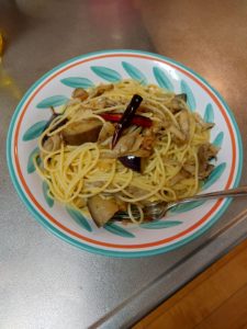 明太子とほうれん草のクリームソース 茄子と舞茸のペペロンチーノ 茄子とウィンナーのトマトソース