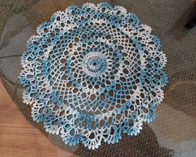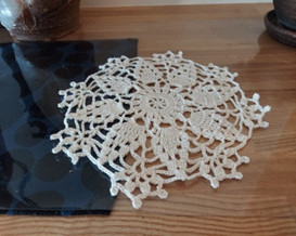 このレース編みは糸の風合いが少し違い、暖かさを感じる編み物です。これも玄関の花瓶の下に置きました。