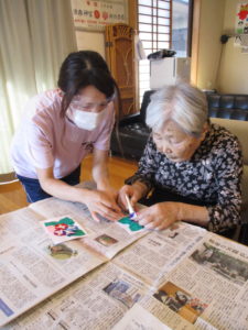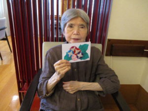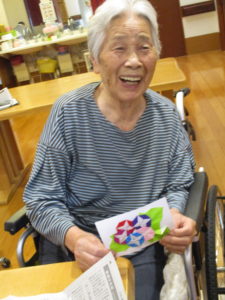 今日は折り紙で作った”あさがお”を貼り付けしていただきました。