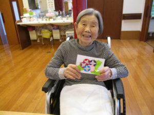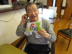 今日は折り紙で作った”あさがお”を貼り付けしていただきました。