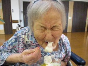 ご利用者の皆さんにも、おやつにアイスクリームを召し上がっていただきましたよ~♪