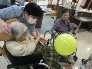 お祝いの前に風船バレーを行います。