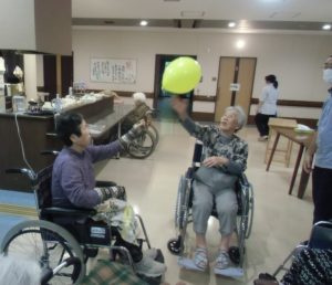 お祝いの前に風船バレーを行います。