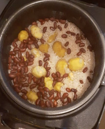 と言っても入居者様から頂いた栗と職員の家で出来た「ささげ」と一緒に仕込みます。
