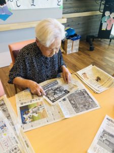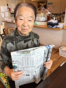 こちらは新聞を折り、ゴミ入れ等作成してもらっています🗑📰