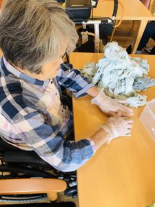 こちらは新聞を折り、ゴミ入れ等作成してもらっています🗑📰