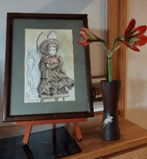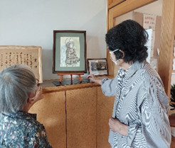 絵画を前に・・「この人形は前に流行ってね。持っていたのよ」