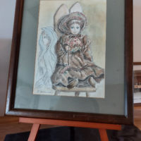 絵画を前に・・「この人形は前に流行ってね。持っていたのよ」