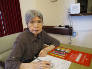 今日のレクレーションでは、十五夜に向けての塗り絵を行いました。