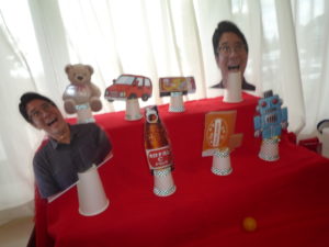 スーパーボールやおもちゃの金魚を浮かべました。
