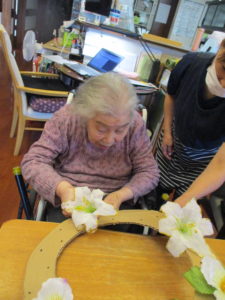 今日の午後からのレクレーションでリース作りをしました(*’▽’)