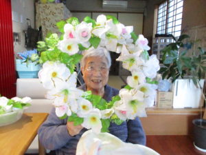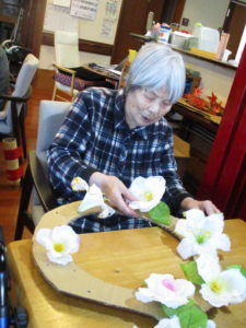 1人1人に造花を型紙の穴に差し込んでいただきました!!