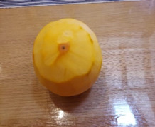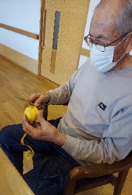 渋柿の芯を少し残して皮むきするのがコツと見本を作ってくれました。