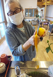 お手伝いの声掛けに応じ、マイ包丁を持参です。