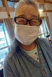 出来た干し柿を見てニコニコです。