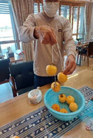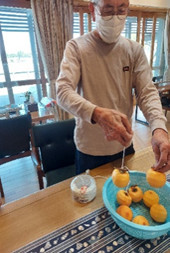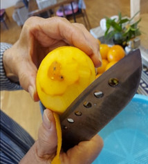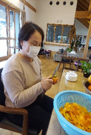渋柿の芯を少し残して皮むきするのがコツと見本を作ってくれました。