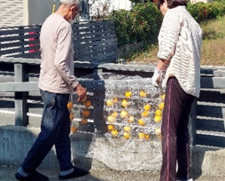 出来た干し柿を見てニコニコです。