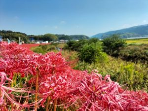 津森倶楽部の前の河川敷には、彼岸花がところ狭しと咲いています。