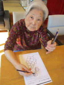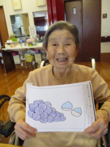 塗り絵をされ、巨峰やシャインマスカットが出来上がりました(*^▽^*)