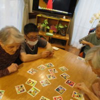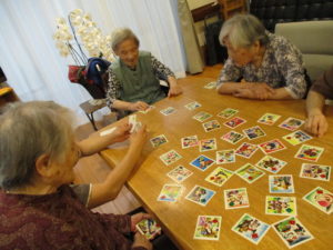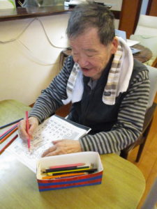 ある日は皆さん集まってカラオケをしました。歌謡曲は後日との事で今回は皆さんが知っておられる童謡などをメインに歌いました。