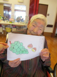 塗り絵をされ、巨峰やシャインマスカットが出来上がりました(*^▽^*)