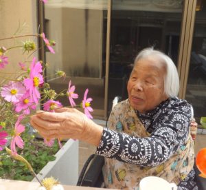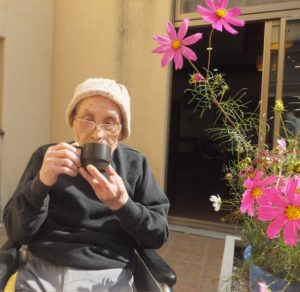 天気が良かったので中庭にて秋のお花見しました(*^▽^*)秋の花と言えば「コスモス🌸」です!