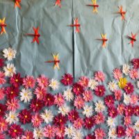 コスモスと赤とんぼを職員が作成し皆さんに貼り付けてもらいました😉🌸