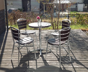 ひいらぎハウスのデッキに、テーブルと椅子を置きました。