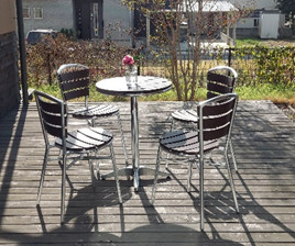 せっかくなので玄関から見える、中庭のテーブルに飾ってみました。